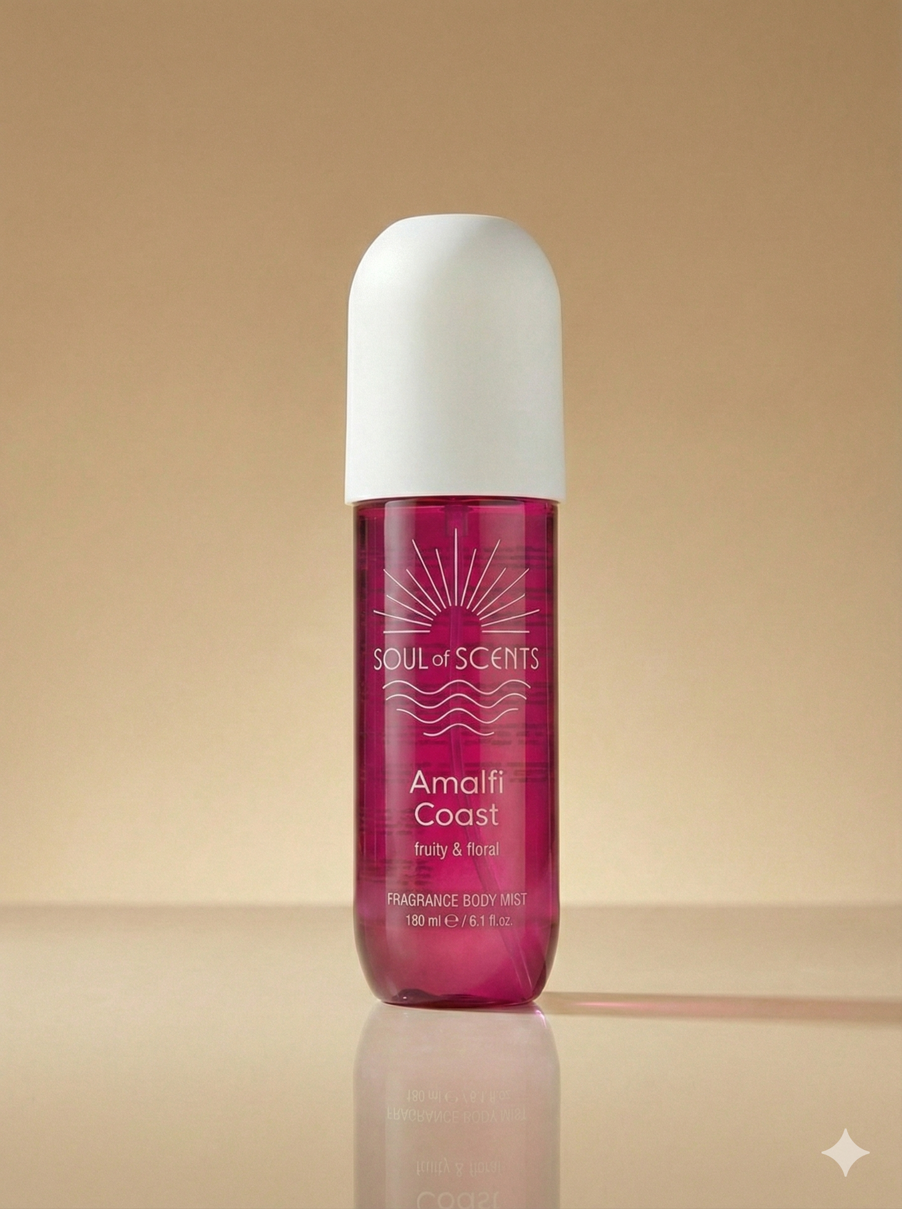 La Dolce Vita. Искрящи хоризонти. Романтика на ръба на скалите. Amalfi Coast бутилира блясъка на италианската Ривиера. Флиртуващ и скъп, той започва с хрупкава свежест на Ябълка и сочни Червени плодове, преливащи в изискано сърце от Жасмин. Финалът е топъл и пристрастяващ – Карамел и Ванилия, които оставят следа, незабравима като гледката."