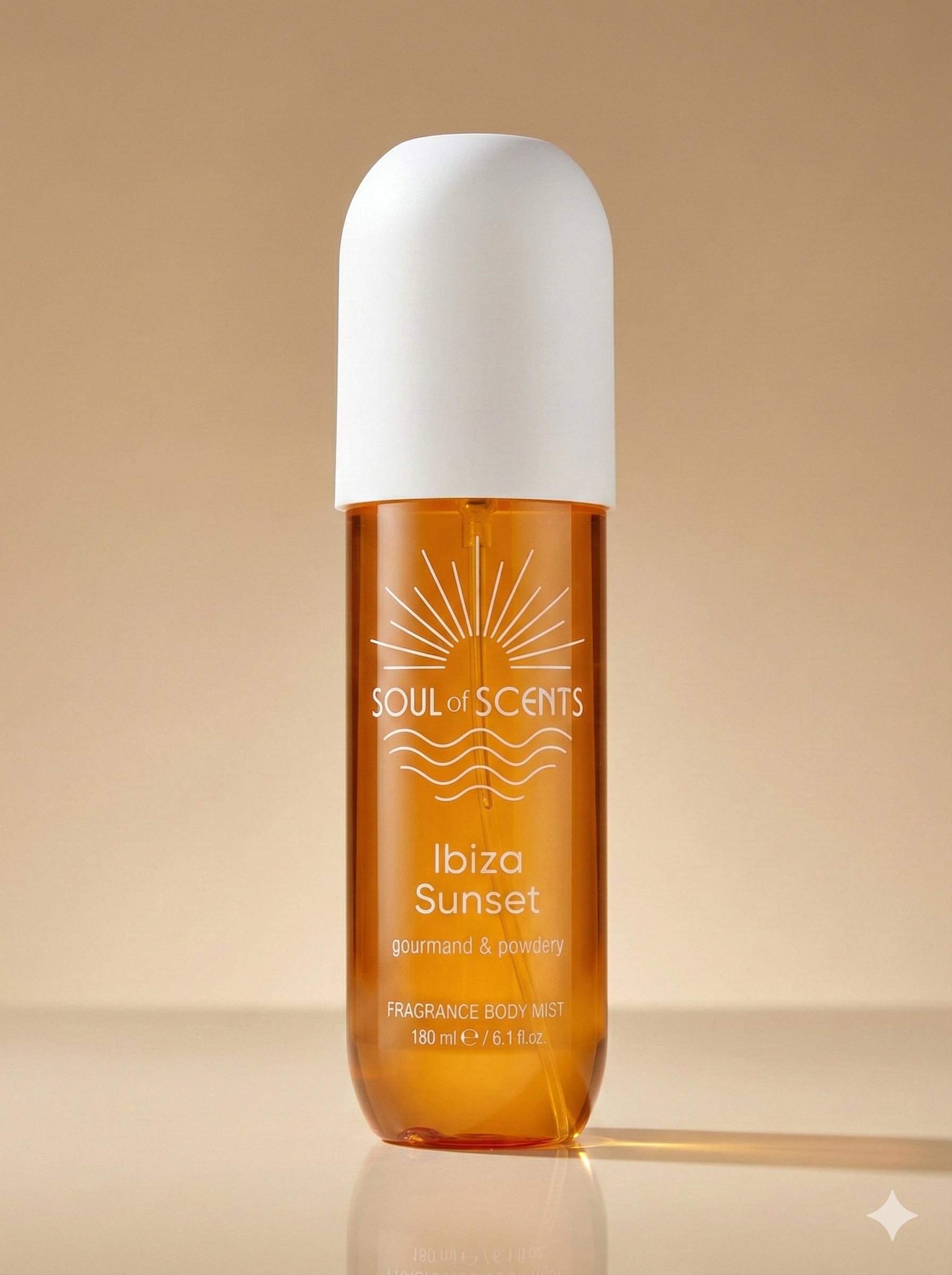 Вдъхновен от магнетизма на Ибиса, Ibiza Sunset е гурме изкушение, което кара хората да се обръщат след теб. Започва с пристрастяващи нотки на шамфъстък и бадем, преливащ в декадентски солен карамел и сандалово дърво. Това е ароматът на увереността, на безгрижието и на онези нощи, които искаш да продължат вечно. Предупреждение: Силно пристрастяващ.