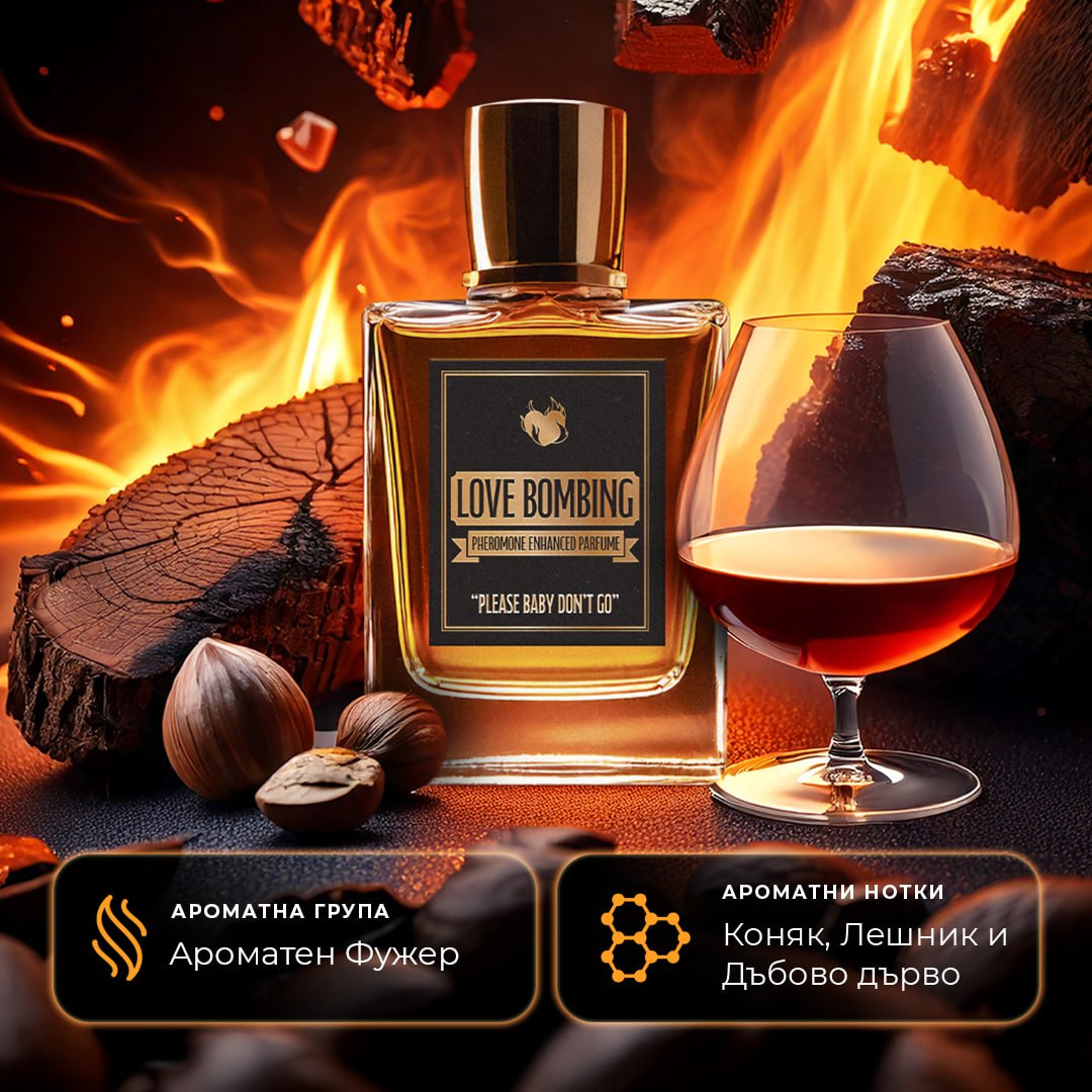 „Love Bombing“ е уникален парфюм, съчетаващ висококачествени аромати с феромони, които влияят на подсъзнанието. Формулата му е проектирана да усилва естествената ти химия, като привлича внимание и създава инстинктивна връзка между теб и хората около теб. Това е не просто парфюм, а мощно средство за привлекателност.